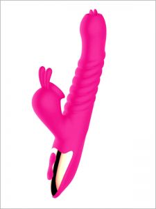 Vibrador con estimulador de clítoris con calefacción. 7 modos de vibración, 7 modos de succión y 7 movimientos de lengua. Es rotativo. A prueba de agua. Recargable con USB.