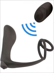 Plug anal estimulador de próstata a control remoto, con doble anillo para pene y testículo. 10 vibraciones. Recargable con USB. A prueba de agua.