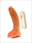 Medidas: 19 x 5cm.- Vibrador en material cyber-skin con tésticulos.- |
